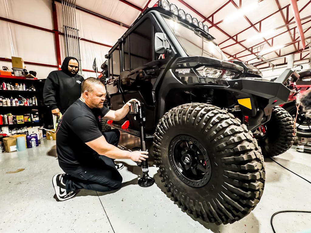 AGM Electric Jack lifting the back of a Kawasaki KRX4